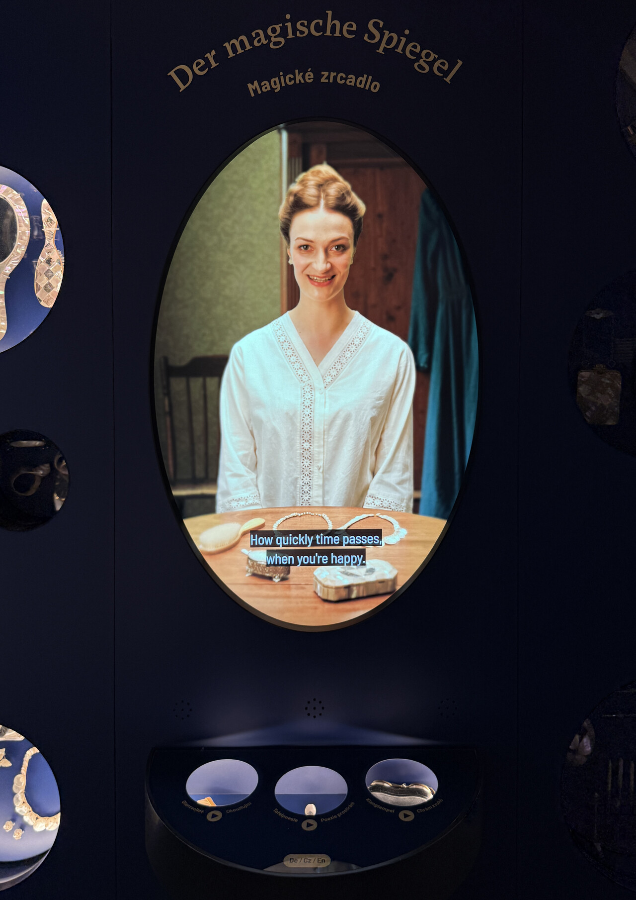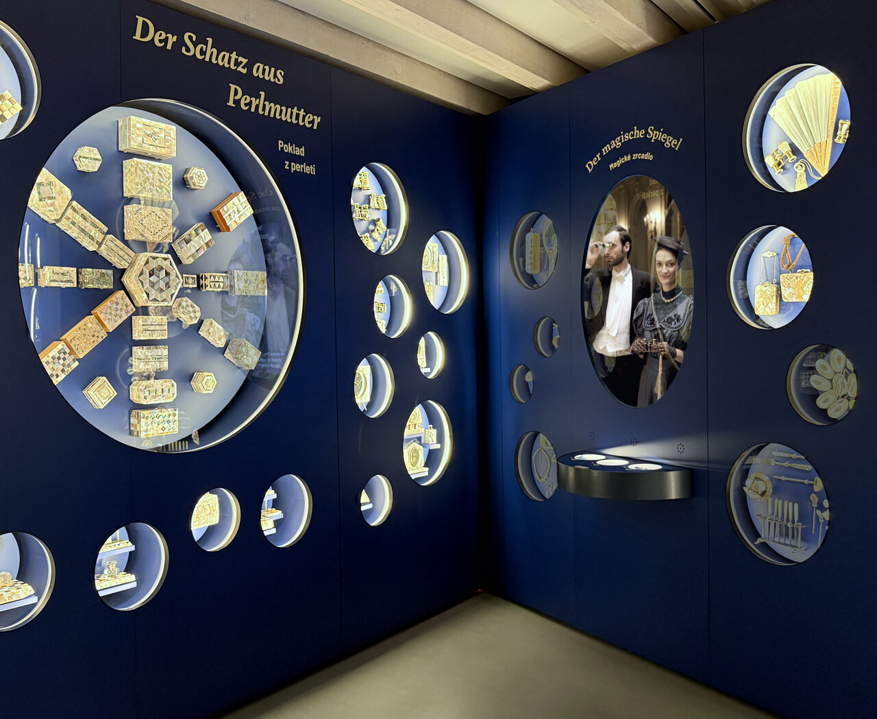 The Magic Mirror installation transports visitors to the heyday of mother-of-pearl craftsmanship in the Vogtland region.