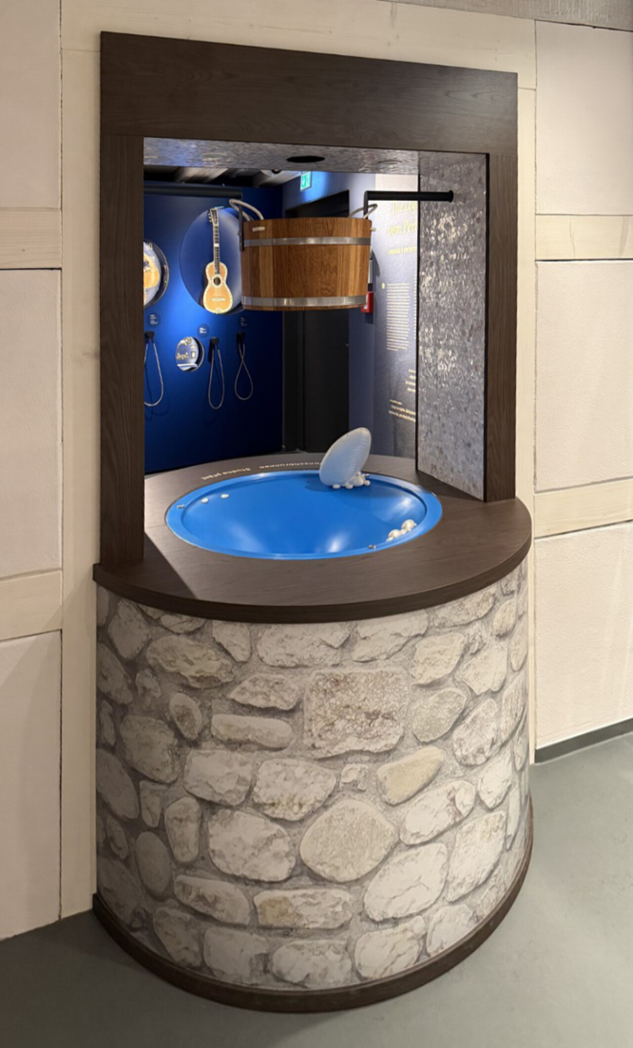 Freshwater pearl mussels in nature very rarely contain pearls. In the past, pearl fishers would find a pearl in only about one out of 2,000 mussels. The pearl-fishing game allows visitors to experience this fact in a playful way.